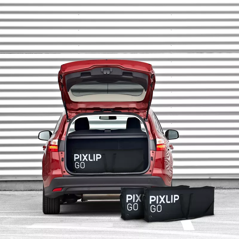 Unsere PIXLIP GO Lightboxen werden in kompakten und mit Schultergurten ausgestatteten Taschen geliefert. Hierdurch ist der Transport der Taschen komfortabel unkompliziert. Durch das sehr geringe Gewicht der Lightboxen kann diese selbst von zierlichen Personen getragen werden. Durch das kompakte Maß der Taschen ist PIXLIP GO zudem das weltweit erste Leuchtwandsystem, das problemlos in PKWs transportiert werden kann.