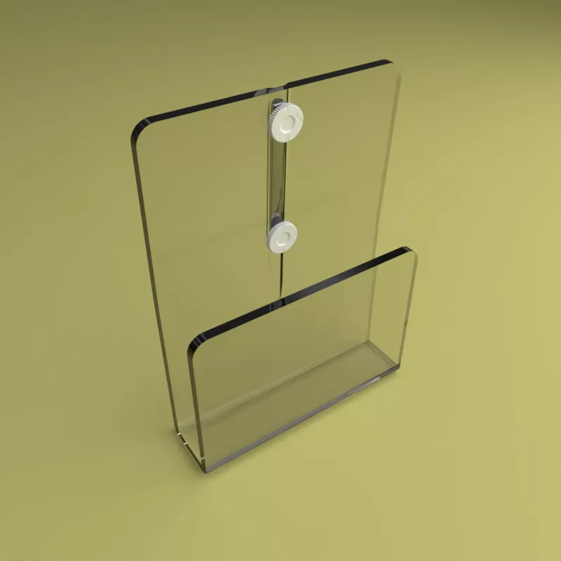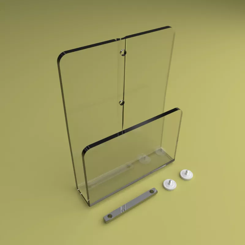 PIXLIP GO Prospekthalter bestehen aus transparentem Acryl mit einem Aluminiumgleiter.Was ist in der Box