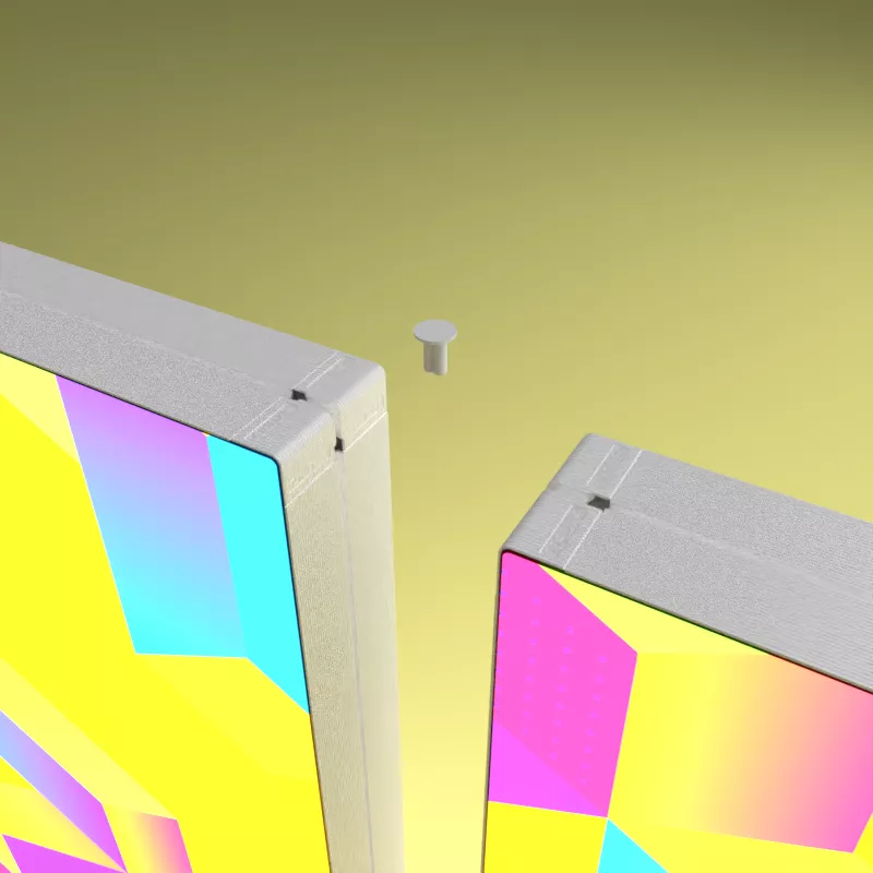 Die unauffälligen Kunststoffelemente sorgen für eine nahezu unsichtbare Verbindung und ermöglichen gleichzeitig eine flexible Anpassung des Systems. So lassen sich Lightboxen schnell erweitern, umbauen oder wieder trennen – perfekt für den Einsatz auf Messen, Events, im Retail oder am Point of Sale.