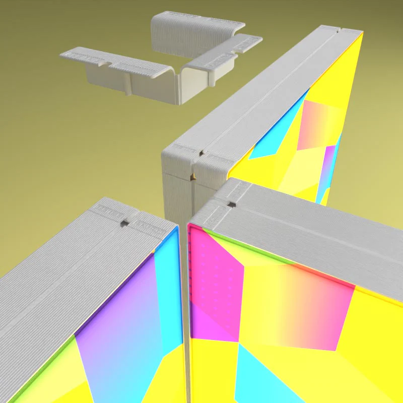 Der U-Flex Verbinder eignet sich besonders für kreative Messestand-Layouts, gebogene Präsentationswände oder variable Raumlösungen. Die Montage erfolgt vollständig werkzeuglos und ermöglicht einen schnellen Auf- und Abbau – ideal für den Einsatz auf Messen, Events, Promotionflächen oder im Retail.